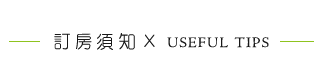 ※ 訂房確認後,請於三日內預付房價五成之訂金,逾期恕不保留客房,不便處請見諒。